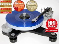 The platter, 30mm thick and weighing 2.5kg is precisely machined from the cast Acrylic and together with the advanced main bearing ensures smooth rotation and rumble and noise free performance. It has a 1.0mm deep recess carved on the top for the LP record's paper label, thus when LP record is placed on it, it will lay flat. If you are afraid that records will slip when placed straight onto the Acrylic platter, please use the record clamp included with your tt9, the tt Clamp to firmly clamp/press the LP record onto the platter for the superior sound.