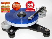 - multi layered cast Acrylic/POM(Derlin) main plinth with the 3-point coupled aluminum sub-plinth